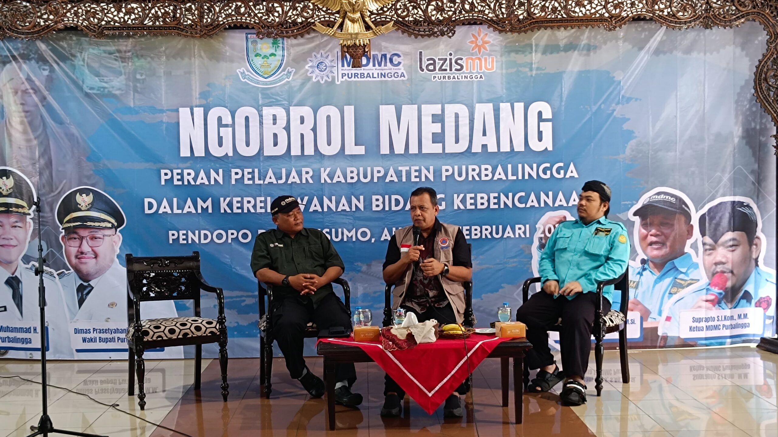 PURBALINGGA – Kepala Pelaksana Badan Penanggulangan Bencana Daerah (BPBD) Purbalingga, Ir Prayitno, M.Si menjadi nara sumber pada kegiatan Ngobrol Medang Bareng ‘Peran Pelajar Kabupaten Purbalingga Dalam Kerelawanan Bidang Kebencanaan’ yang diadakan oleh Muhammadiyah Disaster Management Center (MDMC) Pengurus Daerah Muhammadiyah Kab. Purbalingga, di Pendopo Dipokusumo Pemkab Purbalingga, Minggu (23/2/2025).