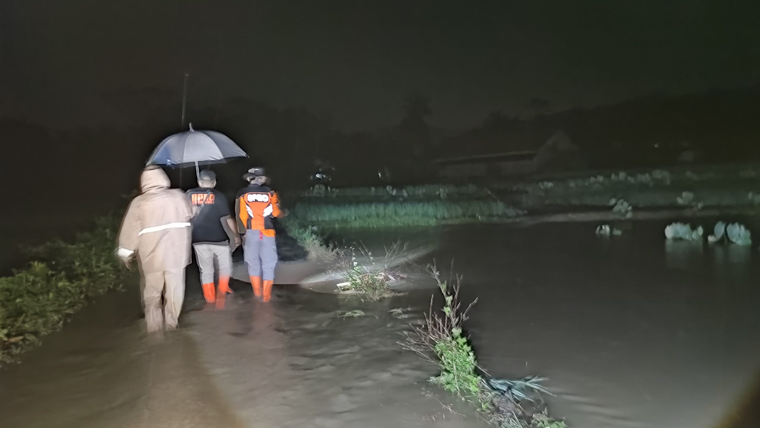 Kondisi terkini pada pukul 21.04 WIB dilaporkan bahwa ketinggian air mulai berangsur surut, meskipun masih merendam jalan dan area persawahan.