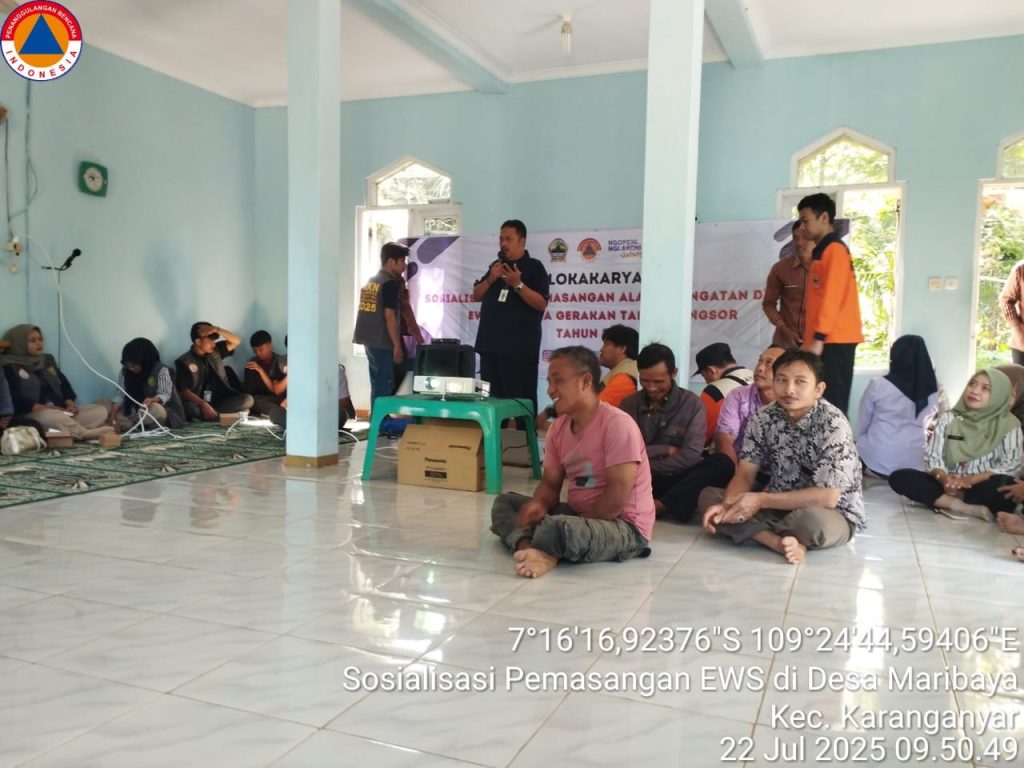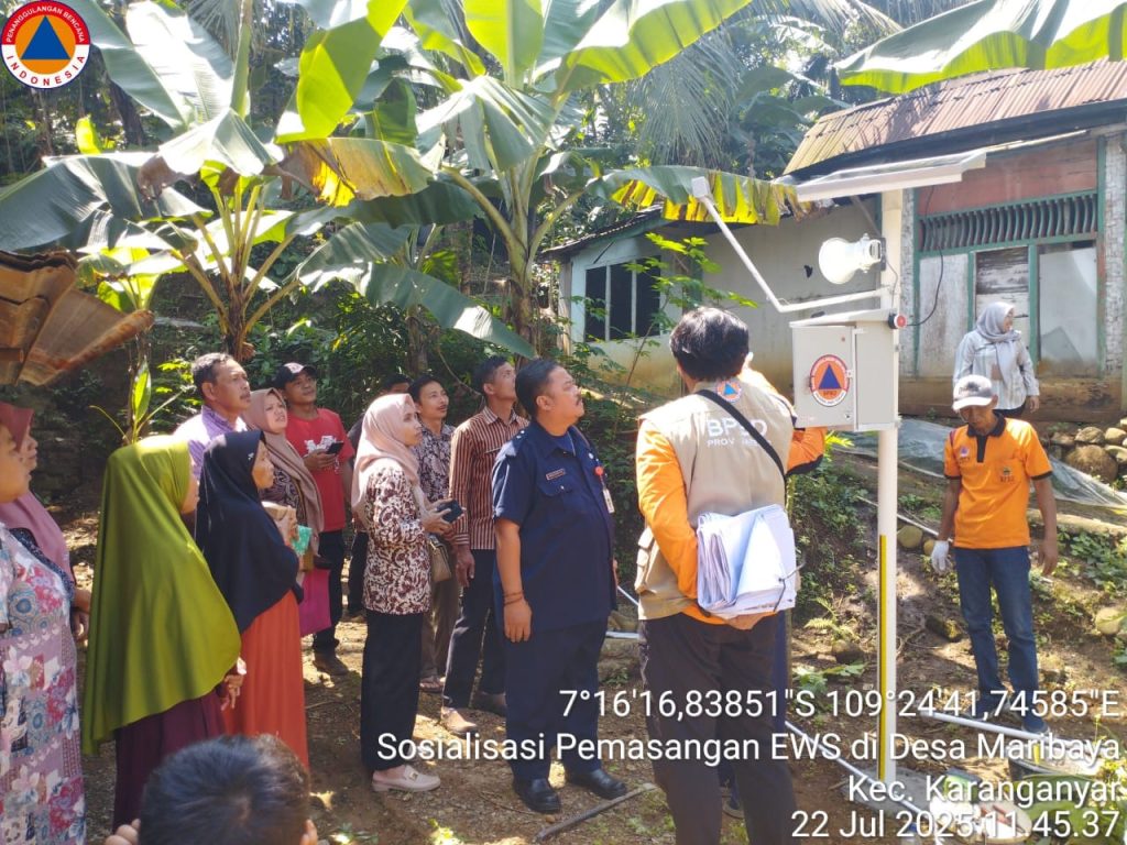 PURBALINGGA – Dalam upaya memperkuat sistem mitigasi bencana tanah longsor, Pemerintah Provinsi Jawa Tengah melalui BPBD Provinsi Jawa Tengah melaksanakan kegiatan sosialisasi dan pemasangan alat peringatan dini atau Early Warning System (EWS) di Desa Maribaya, Kecamatan Karanganyar, pada Selasa (22/7/2025).