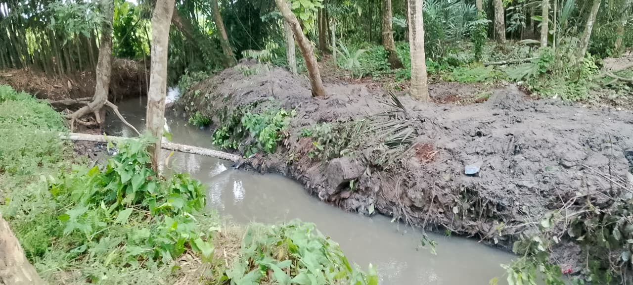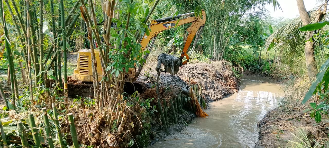 Meski demikian, pelaksanaan di lapangan tidak lepas dari sejumlah kendala. Kondisi tanah sungai yang labil membuat alat berat tidak dapat turun langsung ke aliran sungai. Selain itu, banyaknya rumpun dan akar bambu masih menghambat jalur pergerakan alat berat.