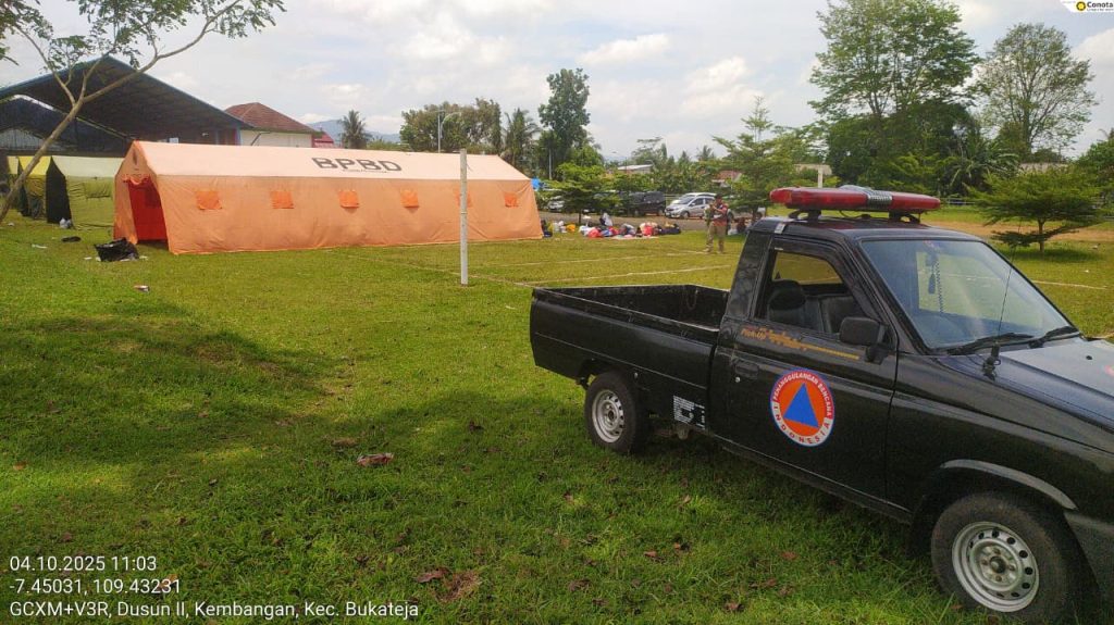 PURBALINGGA — Badan Penanggulangan Bencana Daerah (BPBD) Kabupaten Purbalingga melaksanakan kegiatan pembongkaran tenda pleton di Lapangan Desa Kembangan, Kecamatan Bukateja, pada Sabtu (4/10/2025). Pembongkaran ini dilakukan setelah selesainya kegiatan Kemah Keakraban XVI SMP Istiqomah Sambas Purbalingga.