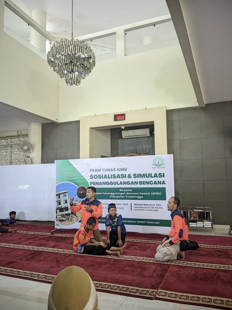 Materi yang disampaikan dalam kegiatan meliputi pemahaman dasar penanggulangan bencana, penjelasan terkait bencana gempa bumi, pemahaman Medical First Responder (MFR), serta dilanjutkan dengan simulasi penanganan bencana di lapangan.