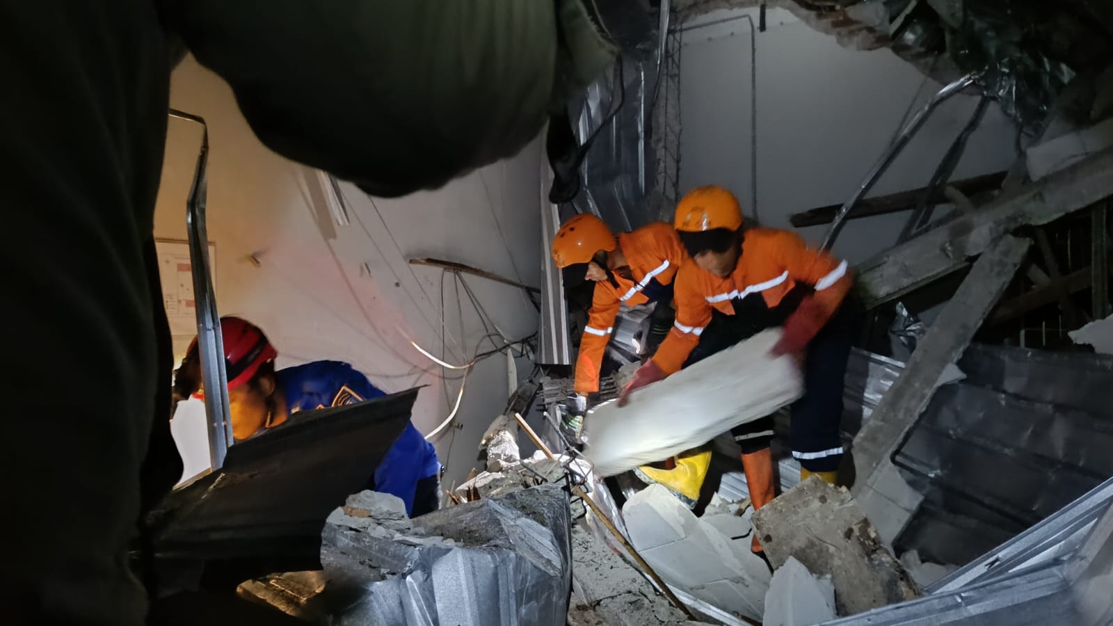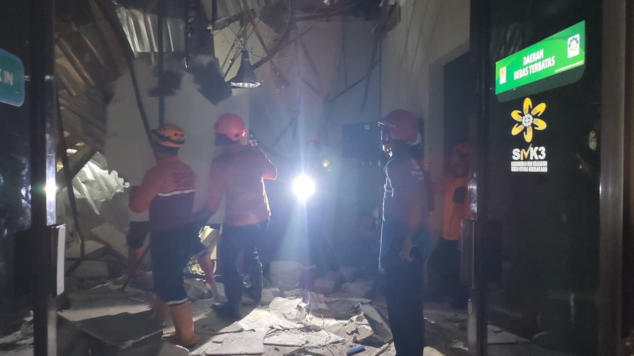 Operasi pencarian dihentikan pada pukul 20.30 WIB. Kondisi bangunan masih terdapat bagian tembok yang miring dan berpotensi kembali ambruk. Dinas teknis terkait seperti DPUPR, DLH, dan DPMPTSP akan melanjutkan asesmen lanjutan pada hari berikutnya.