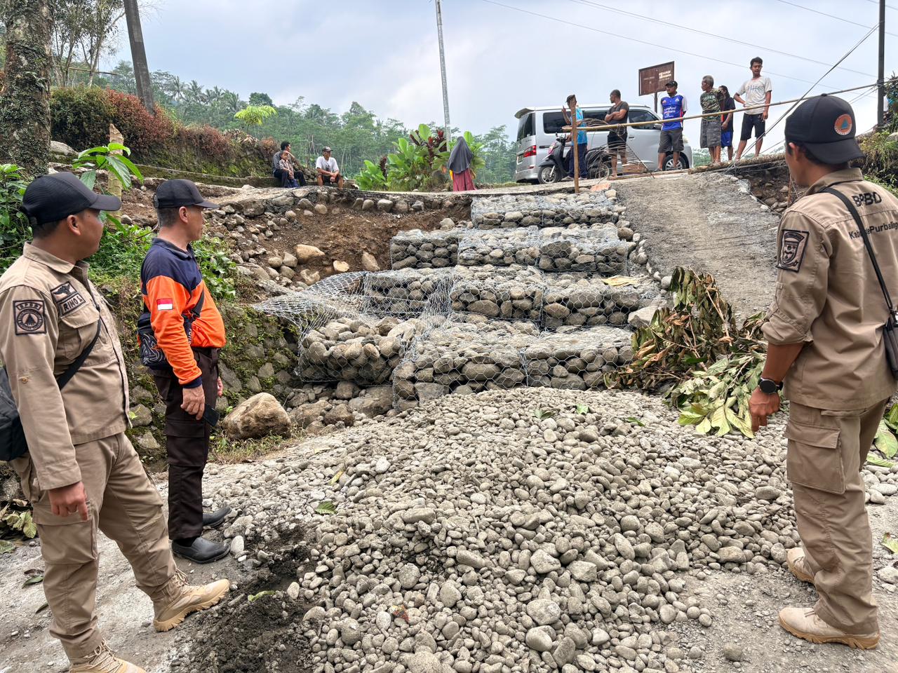 Material tambahan juga terus masuk ke lokasi seperti pengiriman material pasir batu, pemasangan karung plastik, penutupan retakan jalan hingga penambahan sandaran karung berisi pasir untuk memastikan akses sementara tetap dapat dilalui kendaraan roda dua. Bantuan logistik juga terus berdatangan baik dari warga, Lazismu, PMI, Baznas serta para dermawan lainnya sebagai dukungan kebutuhan dapur umum di lokasi bencana.