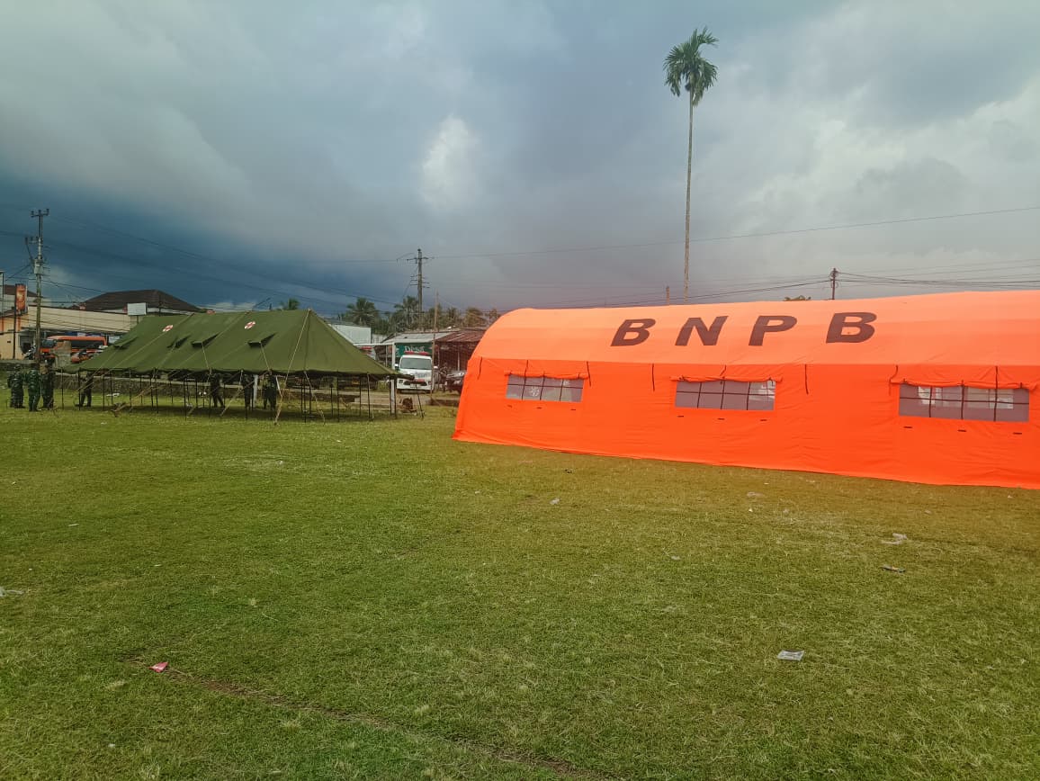 BPBD menurunkan 1 set Tenda Peleton untuk kebutuhan pendukung kegiatan lapangan pada pelaksanaan latihan gabungan.