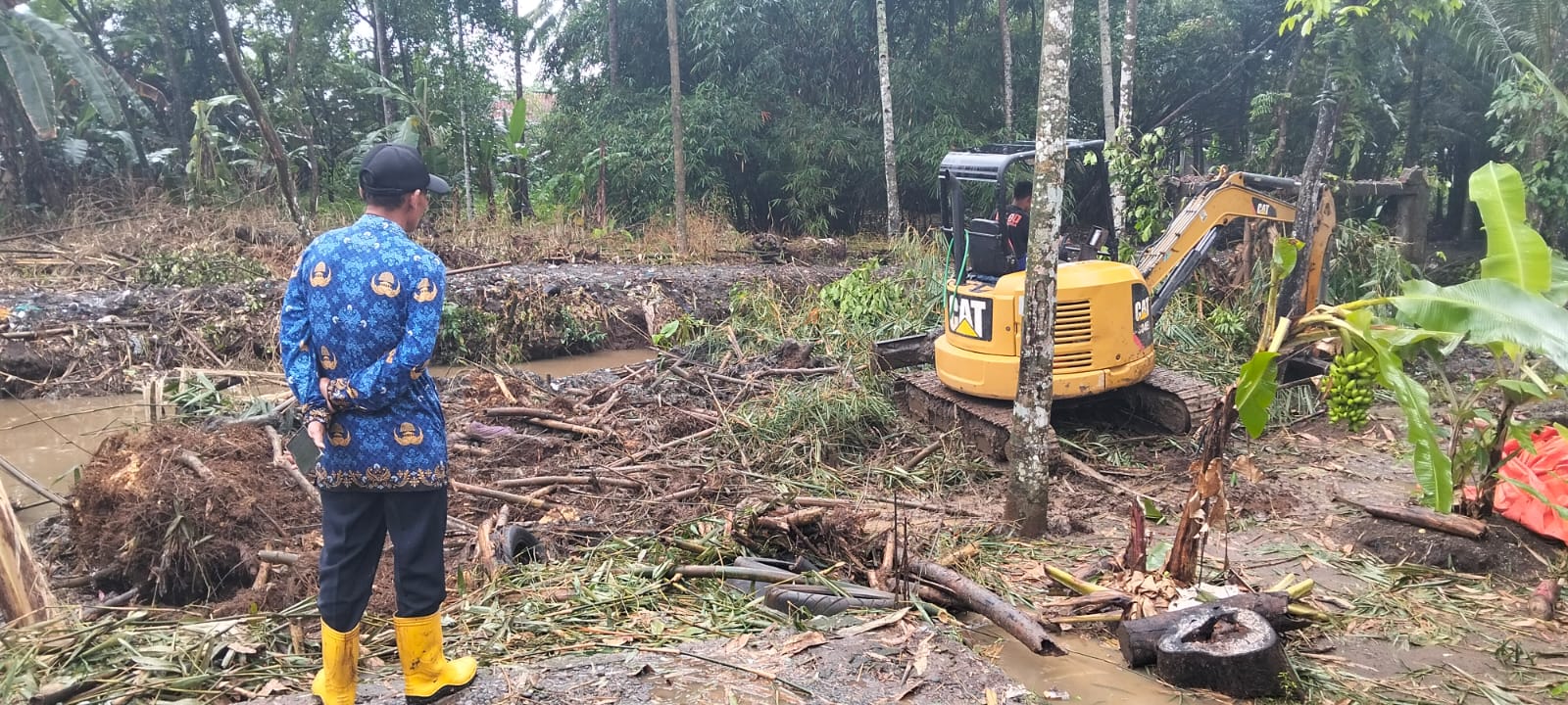 Namun selama pelaksanaan, petugas di lapangan masih mendapati beberapa kendala teknis, antara lain kondisi tanah sungai yang labil sehingga alat berat tidak dapat turun ke aliran sungai, masih banyaknya akar rumpun bambu serta pohon yang menghambat akses, serta terputusnya fun belt alat berat yang menyebabkan gangguan pada mesin dan kebocoran selang radiator. Perbaikan alat berat dilakukan mulai pukul 08.30 WIB hingga 11.30 WIB sehingga pengerjaan sempat terhenti sementara.