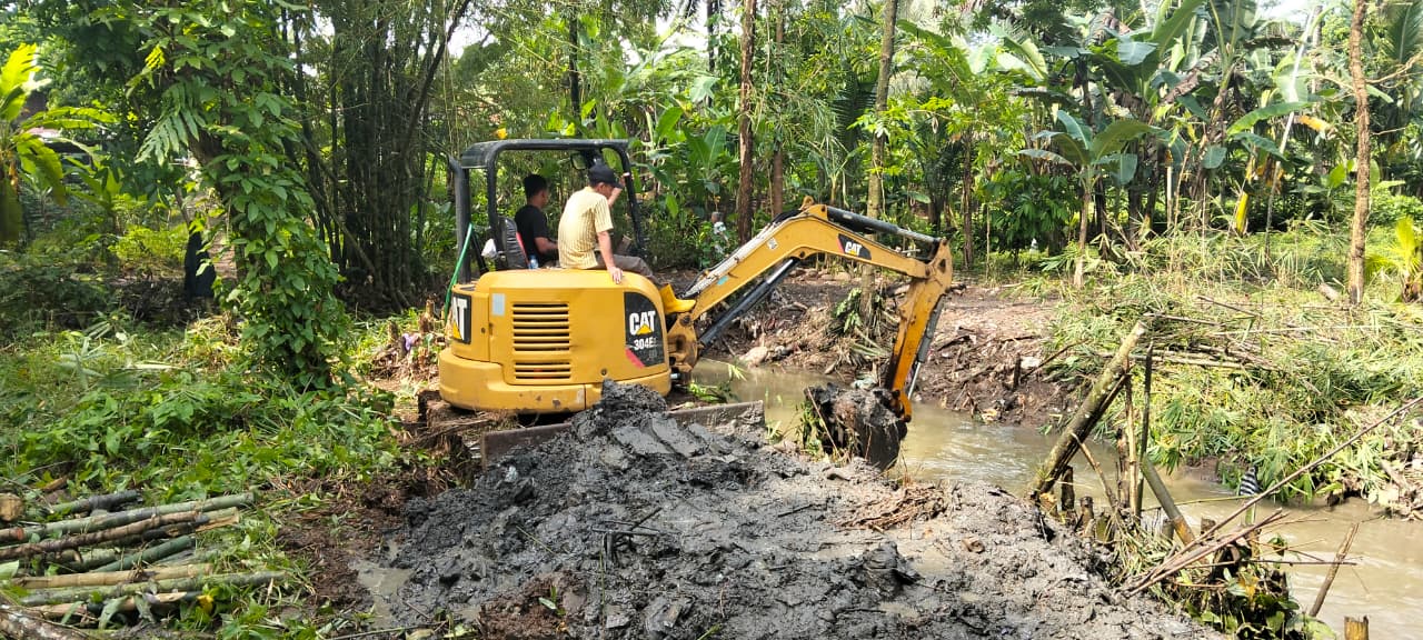 Alat berat saat ini berada di sisi utara sungai untuk melakukan pengangkatan sedimen dan sampah dari titik akhir penanganan, mengingat wilayah tersebut merupakan area rawan terdampak luapan air sungai saat debit meningkat.