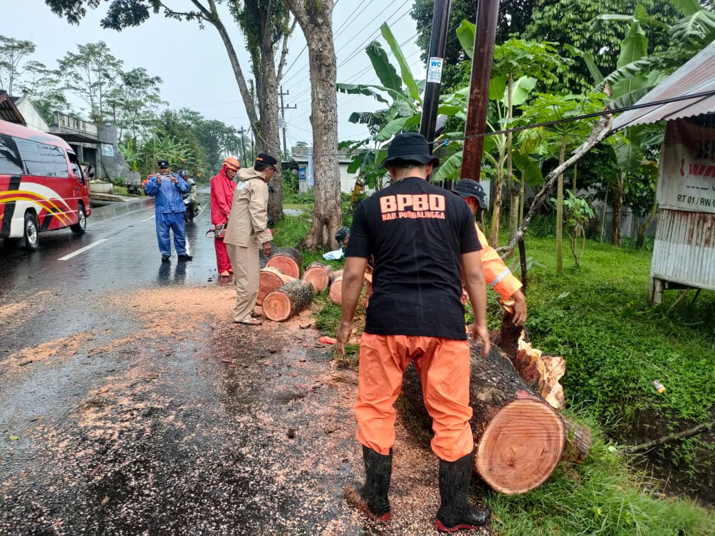 BPBD Kabupaten Purbalingga mengimbau masyarakat agar tetap waspada terutama saat terjadi hujan disertai angin, serta menghindari berteduh di bawah pohon besar yang berpotensi tumbang.