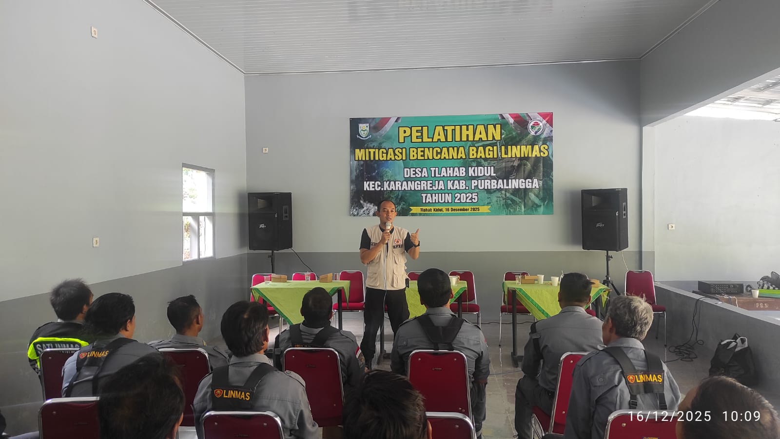 PURBALINGGA – Badan Penanggulangan Bencana Daerah (BPBD) Kabupaten Purbalingga melaksanakan kegiatan Sosialisasi dan Pelatihan Mitigasi Bencana bagi anggota Linmas Desa Tlahab Kidul pada Selasa (16/12/2025). Kegiatan ini dilaksanakan mulai pukul 09.00 WIB hingga selesai di Aula Sumba Lestari, Wisata Curug Sumba, Desa Tlahab Kidul, Kecamatan Karangreja.