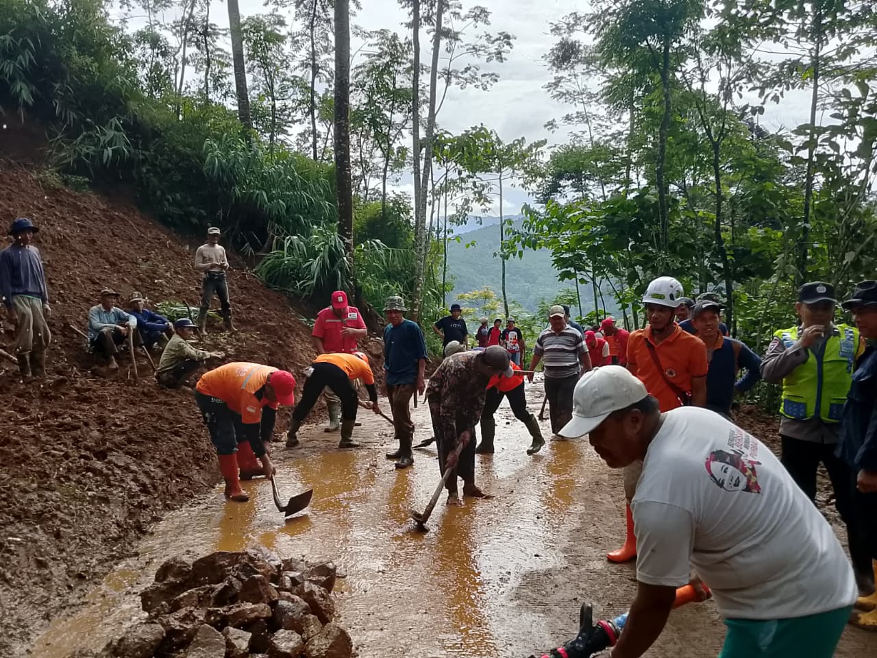 Penanganan darurat ini melibatkan berbagai unsur, antara lain TNI, Polri, PMI, Baznas, Destana Jingkang, Pemerintah Desa Jingkang, serta masyarakat setempat.