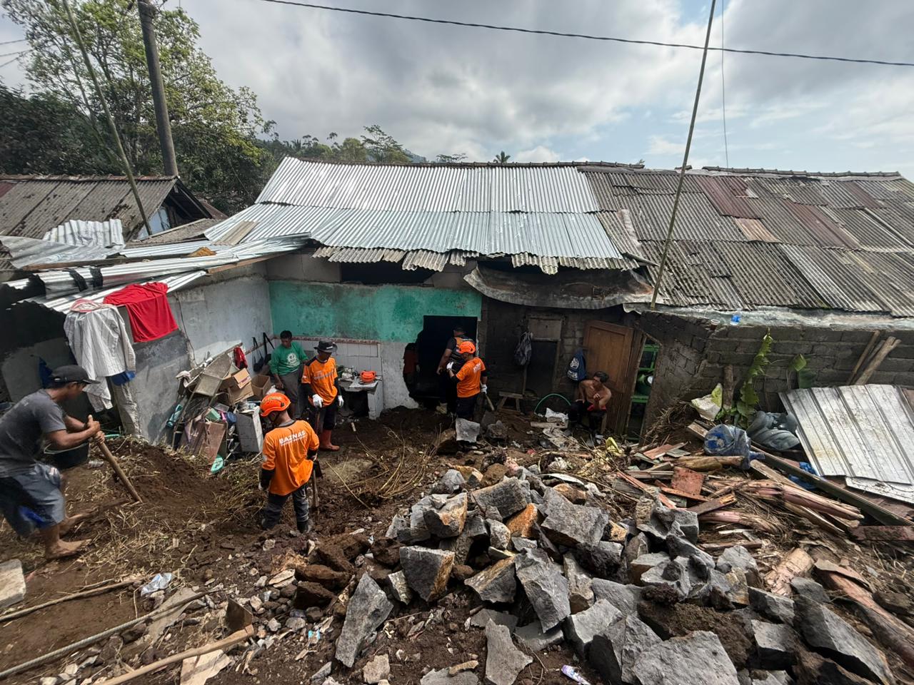 Peristiwa tanah longsor sebelumnya terjadi pada Minggu (12/04/2026) pukul 09.30 WIB, yang mengakibatkan dampak cukup signifikan bagi warga setempat. Tercatat satu orang meninggal dunia dan satu orang mengalami luka ringan. Selain itu, tiga rumah bagian belakang tertimbun material longsoran berupa tanah dan batu besar.