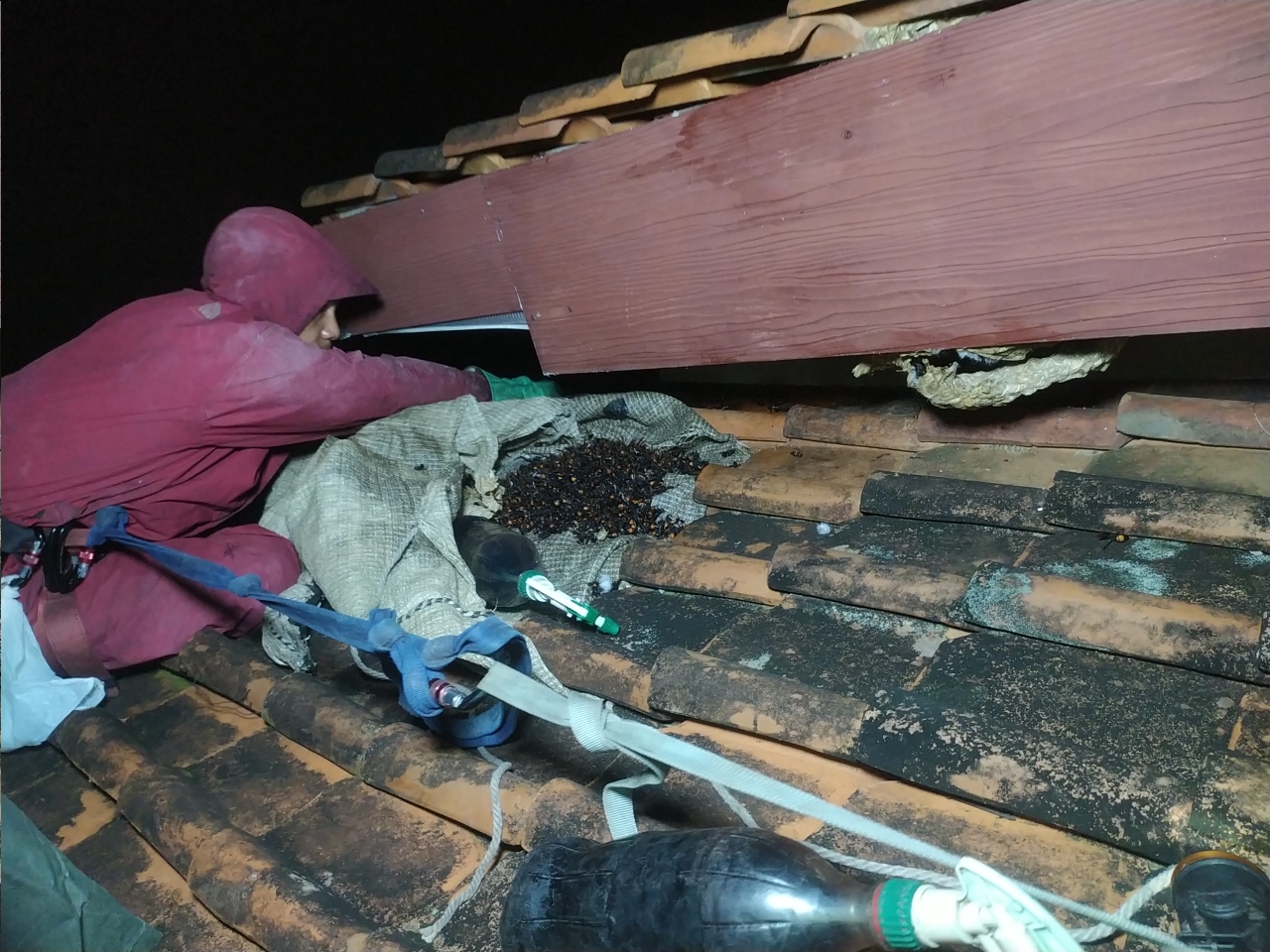 BPBD bergerak cepat menuju lokasi dan langsung melakukan proses evakuasi sarang tawon dengan prosedur penanganan yang aman guna meminimalisir risiko sengatan.