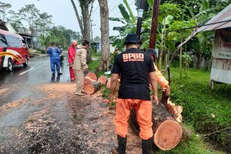 - Pohon Alba tumbang menimpa rumah Bapak SUtowo 60 tahun, RT 03/ RW 04 Desa Kalikajar, Kecamatan Kaligondang